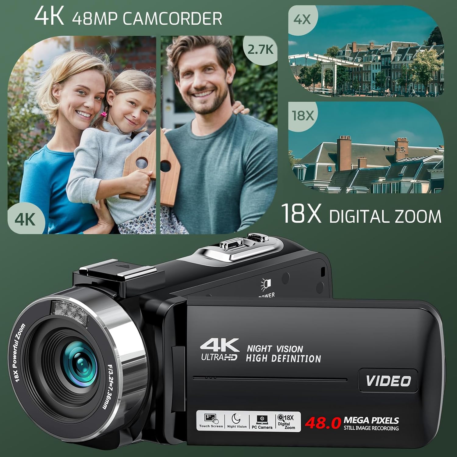 Introducing the ultimate tool for capturing crystal-clear, high-definition footage – the 4K Video Camera Camcorder. With an impressive 48MP resolution and smooth 30FPS frame rate, this camcorder delivers professional-quality video that will wow your audience.